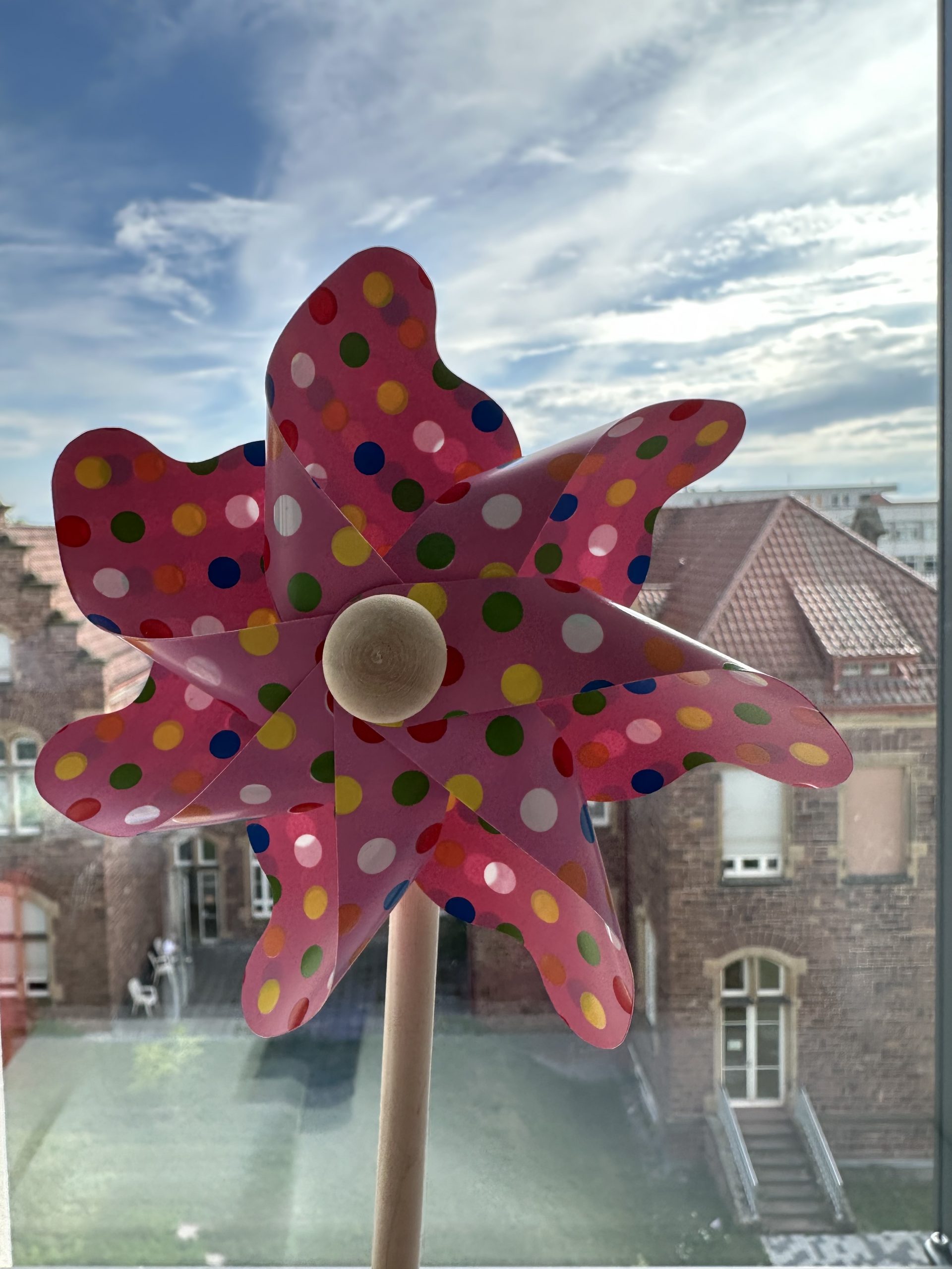 Das Bild zu dem Beitrag zeigt ein Windrad vor dem Blick aus meinem Krankenhausfenster. Meine Chorschwester hat es mir gestern gebracht, gemeinsam mit zahlreichen Genesungswünschen meiner Chorgemeinschaft. Damit ich die tiefe Bauchatmung üben kann und ganz bald wieder genug Luft zum Singen haben werde.